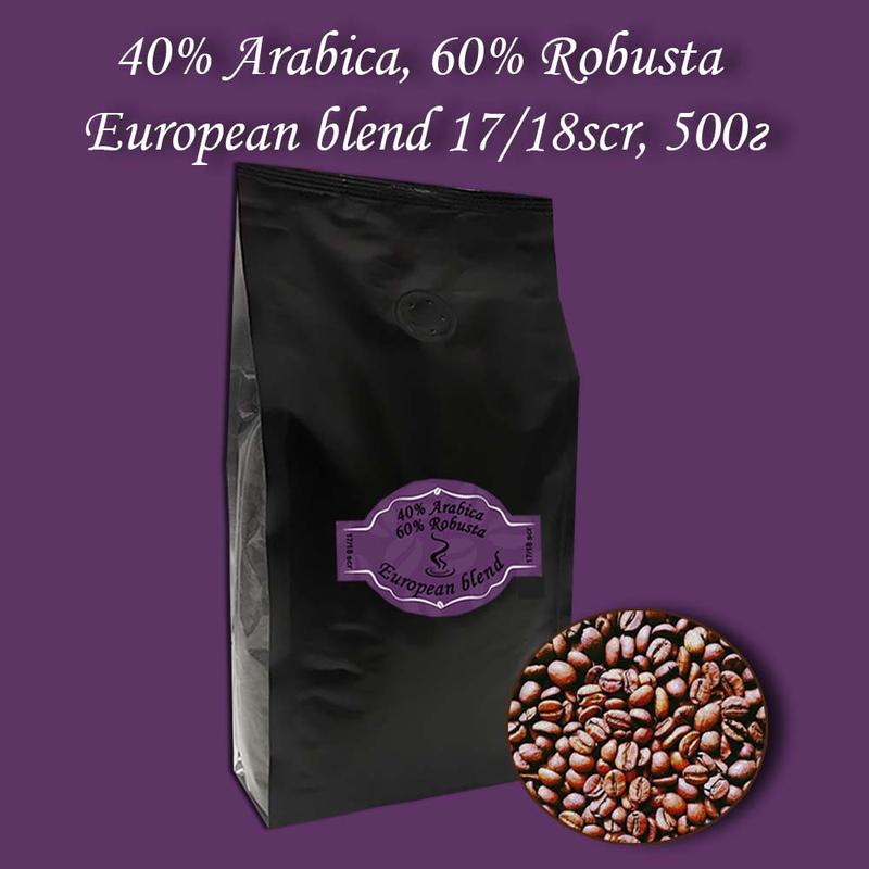 Кофе зерновой european blend (40% arabica, 60% robusta) 17/18 scr 500г. бесплатная доставк...