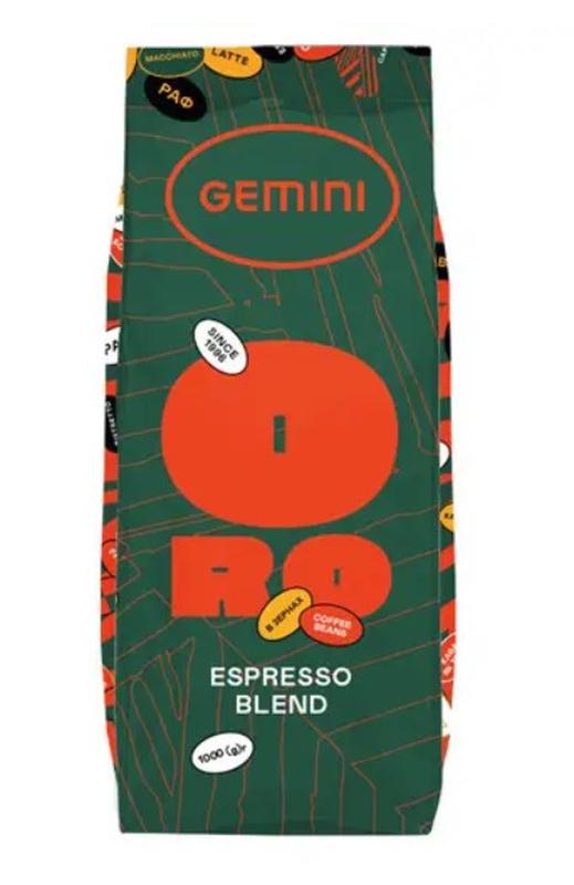 Gemini Espresso ORO Італійська обсмажування. Склад: 100 % Купаж Арабік : Колумбія/ Ефіопія/ Руанда/ Бразилія Кава з повним збалансованим оксамитовим смаком