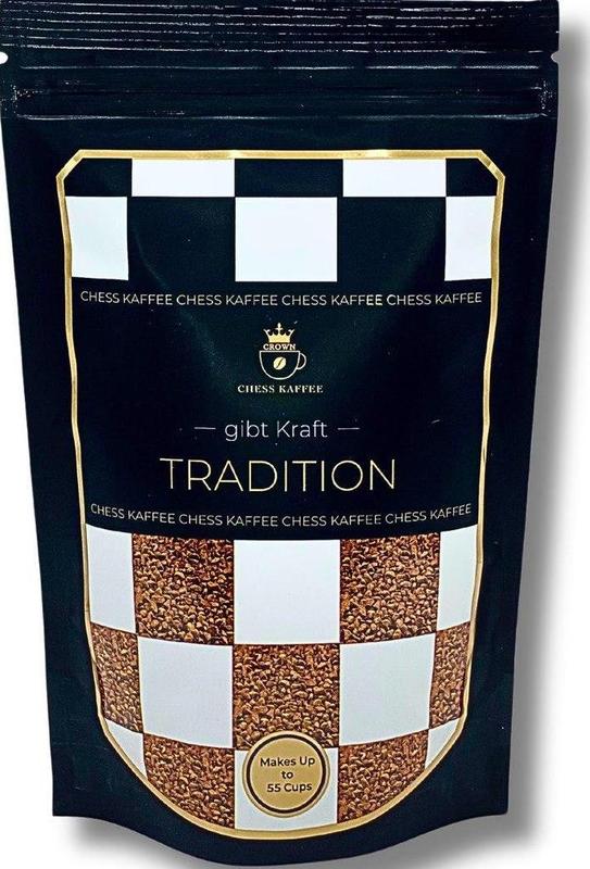 Кофе CHESS KAFFEE TRADITION – классика для ценителей по-настоящему вкусного кофе. В процессе ее производства применяются только отборные сорта смесей, а также неотъемлемой частью создания напитка специальная технология обжаривания. Растворимый кофе отличается своим ярким ароматом свежих кофейных зерен. Это достигается путём сочетания ее состава зерен класса робуста и арабика. Сбалансированная рецептура делает этот напиток не только по-настоящему благородным, но и невероятно ароматным.