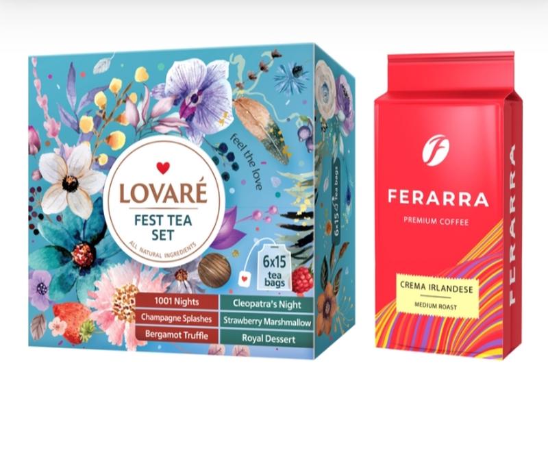 набір: кава Ферара 250 мл та чай ловаре 90 пакетиків.