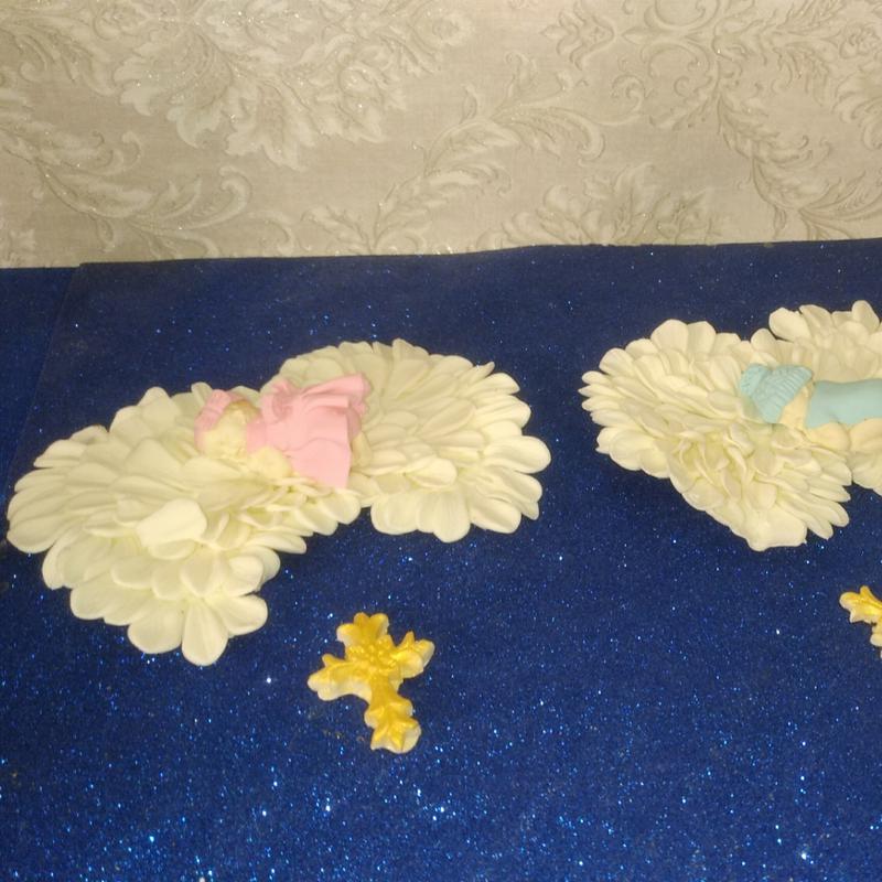 Набір цукрових фігурок для хрещення "немовля у крилах ангела"