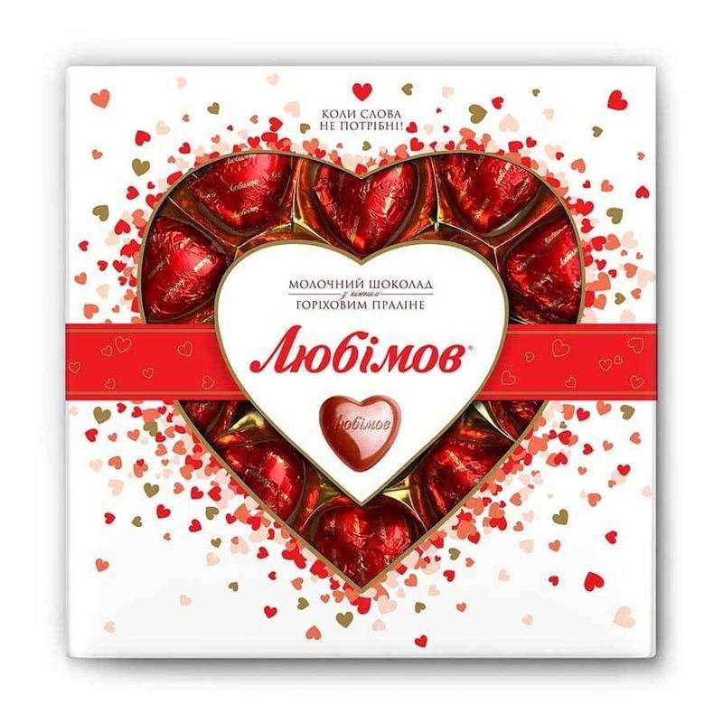 Конфеты Любимов — нежный молочный шоколад с ореховым пралине. Романтическое настроение в классическом ассортименте Любимов Шоколадные сердечки. Коробка с прозрачным окошком, украшенная парчовым бантом — просто находка, когда хочется сделать родным и близким приятный сюрприз. Вес: 125 грамм