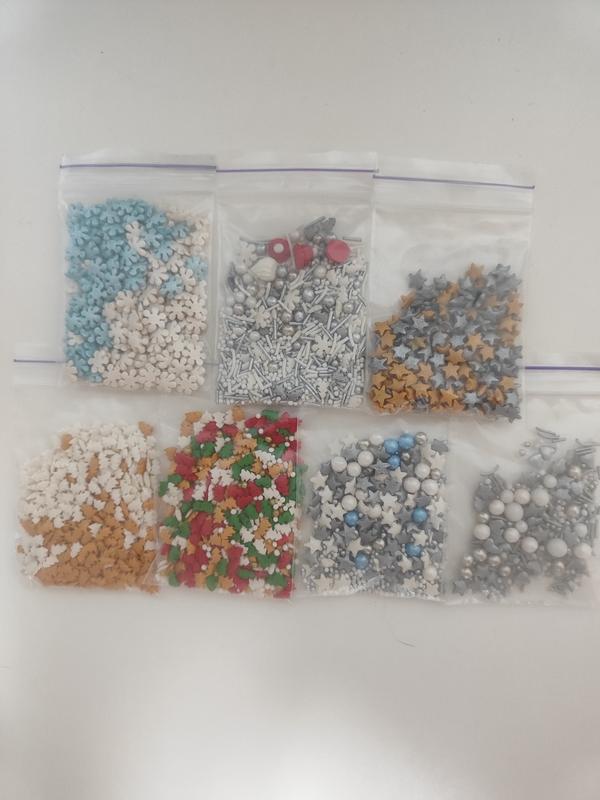 Яскрава кондитерська посипка з мікро безе з цілим міксом різноманітних перламутрових посипок: круглих, ялиночок, паличок, нонпарелі, конфетті, зірочок, сердечок та багато іншого. Декоративні кондитерські посипання наносять на поверхню готових виробів (тортів, тістечок, кексів, рулетів, морозива, шоколадної глазурі, цукровою помадки, здоби, бубликів, пасок, та багато іншого) для додання їм красивого вигляду. Ціна 20 грн. за один пакетик!