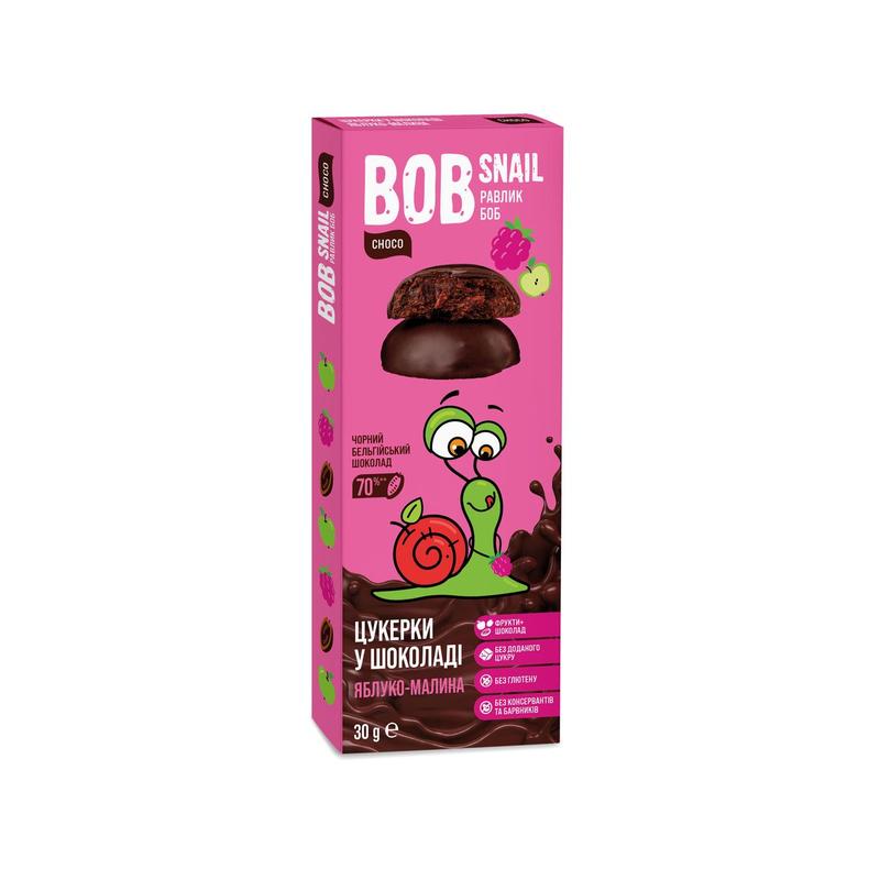 Цукерки натуральні bob snail яблуко-малина у чорному шоколаді 30г