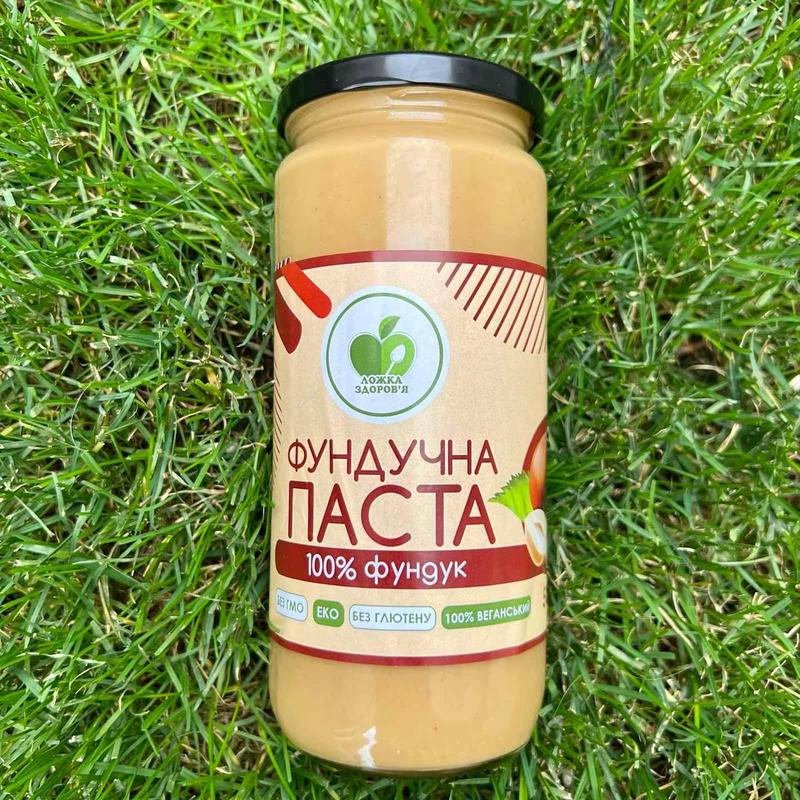 Натуральна Фундук паста без цукру 500 грамів, Фундучна органічна паста "Ліжка Здоров'я" ## Фундук — головний компонент найсмачніших шоколадних паст і цукерок. Це популярний перекус спортсменів і прихильників ЗОЖ. А ще — натуральний засіб для профілактики десятків захворювань. Вчені радять обов'язково вмикати фундук до раціону. Розповідемо, навіщо це потрібно. У яких країнах його шукати, якщо ви турист? Де купувати та як вибирати горіх у Росії? Тут усе, що потрібно знати про фундук. Лісовий горіх і фундук В мережі сотні розмитих відповідей на питання, у чому різниця між лісовим горіхом і фундуком. Ми не буде занурюватися в ботаніку, щоб внести ясність, — поясним простіше. Друга назва лісового горіха — льощина. Спочатку він росів тільки в дикій природі. Але садівники його обдомашнули. Фундук — теж ліщина, просто іншого сорту. Однак його так не називають, щоб не було плутанини. Фундук — окульований сорт лісового горіха. Він грубіший, менш жирний. Лісовий горіх (на фото) злегка витягнутий, у очищеному вигляді швидше схожий на мигдаль. На смак ліщина трохи солодша за фундуку, а корисні властивості в них однакові. Шукаємо партнерів з поширення. Спеціальні ціни. Корисні властивості Вчені довели більше десятка корисних властивостей фундука для організму людини. Щоб отримати від продукту максимум, потрібно їсти його сушеним або смаженим без олії. Фахівці радять чоловікам увімкнути фундук до раціону, позаяк він сприяє виробленню тестостерону. Лісовий горіх також позитивно впливає на організм жінок: нормалізує гормональний фон, покращує стан шкіри та волосся, допомагає схуднути. Завдяки високому вмісту фолієвої кислоти фундук корисний під час вагітності. Також горіх гарний для дітей шкільного віку. Головне, чим корисний фундук: 1. Покращує роботу серцево-судинної системи. Фундук багатий на корисні жирні кислоти, які знижують рівень «поганого» холестерину. Регулярне вживання лісового горіха нормалізує тиск, знижує навантаження на серце, зміцнює судини. 2. Профілактика анемії. Горіх багатий на залізо. Вчені радять вегетаріанцям обов'язково додавати його до раціону. 3. Допомагає щитоподібній залозі. Фундук містить йод, який відіграє важливу роль у її правильному функціонуванні. 4. Очищає від токсинів. Він чистить організм і покращує склад крові. Тому горіх варто вживати під час переходу з нездорового харчування на правильне. 5. Покращує роботу мозку. Стимулює його активність, допомагає підвищити концентрацію, нормалізує сон. 6. Зміцнює імунітет. Фундук свіжого врожаю містить вітамін C. Їжте 4-5 горішків на день для профілактики сезонних застуд або інфекцій. Фахівці радять їсти фундук із медом. 7. Допомагає нервовій системі. Магній відповідає за боротьбу зі стресом. Горіх корисний у разі підвищених розумових навантажень. 8. Допомагає схуднути. Покращує метаболізм, насичує завдяки високотриманню білка. 9. Зміцнює кістки. У фундуку багато кальцію. Горіх корисний для профілактики остеопорозу та проблем із суглобами. 10. Покращує роботу ШКТ. Сприяє кращій перистальтиці кишківника, чистить організм завдяки клітковини, а корисні жири допомагають роботі травного тракту. Добова норма та шкоду Калорійність фундука — 628 ккал на 100 грамів, у смаженому вигляді — понад 700. Однак його корисно додавати в раціон у разі схуднення. Він добре насичує і слугує джерел