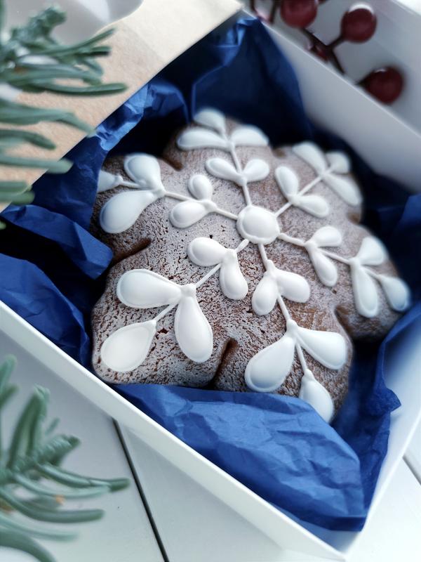 ❄️ Пряник "Сніжинка" ❄️ Вас вітає команда CRAFT COOKIES! Ми створюємо медові пряники із запашними спеціями та вручну розмальовуємо їх. Тож, саме тому наш продукт називається крафтовим. ❄️ Пропонуємо вам цей новорічний пряник, прикрашений королівською глазур'ю! ❄️ Розмір пряника 10 см ❄️ Медовий пряник всередині крафтової коробочки на декоративній підложці. ❄️ Строк придатності пряника 6 місяців ❄️У складі тільки натуральні та якісні продукти, перевірені роками нашої роботи: Масло вершкове Мука вищого ґатунку Мед натуральний різнотрав'я або акація Цукор Цукрова пудра професійна Яйця Кориця Гвоздика Мускатний горіх Імбир Ваніль Професійні харчові барвники виробництва Україна. ❄️По Україні пересилаємо Новою поштою ❄️Є відправки в Європу ♥️З радістю чекаємо на ваші замовлення!♥️ Товар виготовляється на замовлення