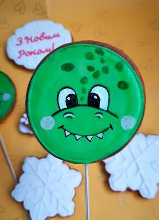 Пряничні дракончики на велику компанію🦖 Для смачних та бюджетних привітань діток у садочку, школі🎄 Розмір 8,5см Кожен пряник в пакетику зі стрічкою На паличках чи без - вказуйте, будь ласка, в коментарях до замовлення Додаткові характеристики: Привід: Новий рік Привід: Подарунок дитині Привід: Різдво Різновид: Медові пряники Різновид: Імбирні Пряники Різновид: Пряники з глазур'ю Товар виготовляється на замовлення