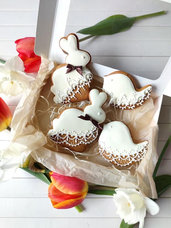 Сет "Пряники до Великодня 🌷Вас вітає команда CRAFT COOKIES! Ми створюємо медові пряники із запашними спеціями та вручну розмальовуємо їх. Тож, саме тому наш продукт називається крафтовим. 🌷 Розмір коробочки 18*15 см, всередині 4 медових пряника на декоративній підложці. 🌷У складі тільки натуральні та якісні продукти: Мед різнотрав'я, Масло Мука вищого ґатунку, Яйця, Цукор, Професійна цукрова пудра, Кориця, Мускатний горіх, Гвоздика, Ваніль Імбир Кардамон Професійні українські харчові барвники. 🌷 Строк зберігання 6 місяців. Пересилаємо по Україні Новою поштою Є доставка закордон. 🌷Кожен пряник пакуємо в прозорий пакетик зі стрічкою, а весь набір в крафтову коробочку. 🌷 Будемо щасливі виконати ваше замовлення!