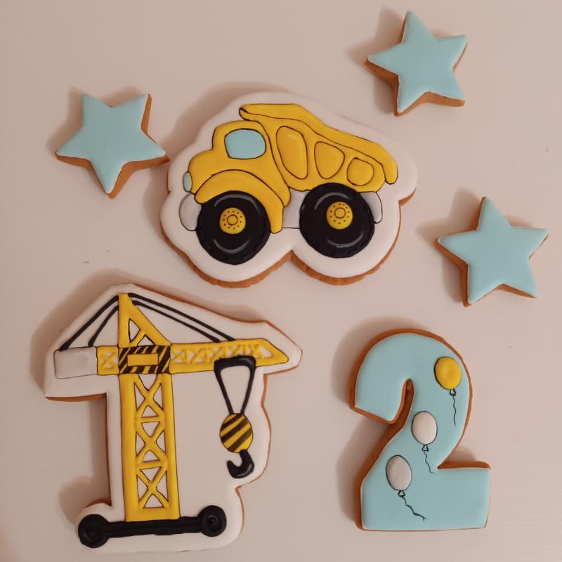 Пряники машинки, ціна 470 грн.кран, цифра топери на торт будівельна техніка