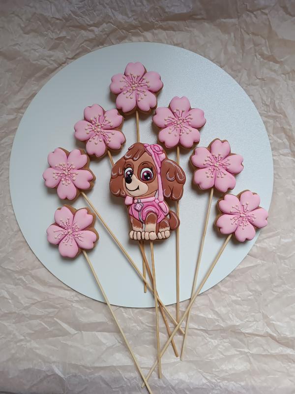 🌸через кнопку Купити не працюю! 🌸Відправка Новою поштою, оплата на карту Набір медово імбирних пряничків з улюбленим героєм щенячого патруля багатьох дівчаток Скай для декорування тортика Ціна набору 565 грн + 15 грнкомісія сайту. Можна робити без шпажки у святкову коробочку. Також можна додати цифру