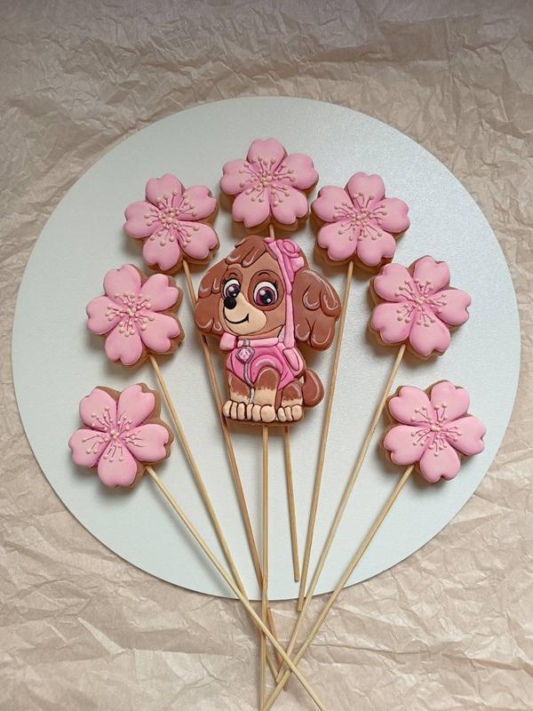 🌸через кнопку Купити не працюю! 🌸Відправка Новою поштою, оплата на карту Набір медово імбирних пряничків з улюбленим героєм щенячого патруля багатьох дівчаток Скай для декорування тортика Ціна набору 565 грн + 15 грнкомісія сайту. Можна робити без шпажки у святкову коробочку. Також можна додати цифру