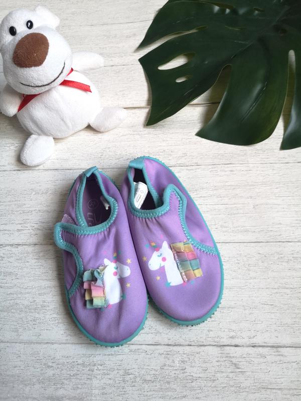 Гарнв пляжні капці аквашузи з єдинорогами. Заявлений розмір 24, по устілці 15,5 см.