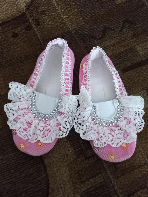 Очаровательные чешки для девочки. Стелька 18.5 см. Подошва резиновая, верх ткань