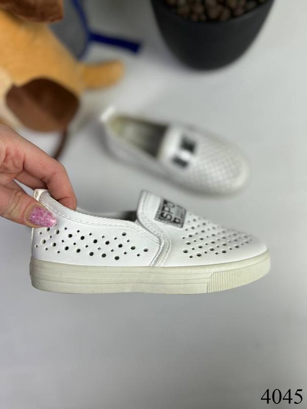 НОВИНКА Код: 4045 Мокасини з перфарацією! Мають гнучку підошву. Розмір: 27. Виробництво: Туреччина. Підошва: 1,5 см. Повномір. ЕкоШкіра. Колір: Білий. 27 - 16.8 см