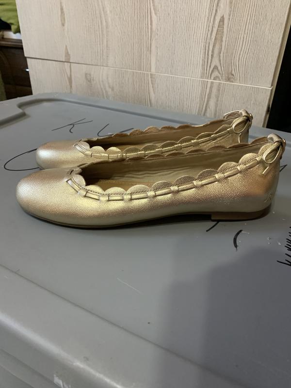 Туфли балетки золотистого цвета кожаные, декорированы бантиками сзади длина стельки 22,5 см, привезенные из США