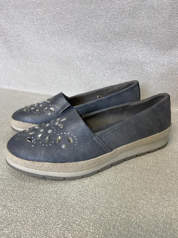 Балетки світло голубого кольору на невисокій танкетці 36 розмір. Устілка шкіра. Ззовні замінник.