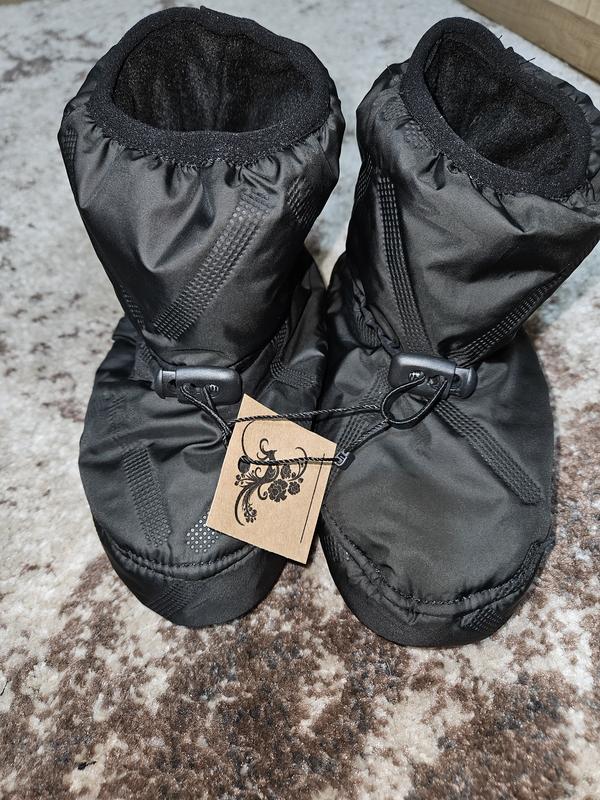 чобітки для розігріву на танці,шиті з плащівки на синтепоні, флісовий підклад. Підошва з антисковзкої тканини нашита на єкошкіру. Оздоблена гумкою,що стягувався блочком,для того щоб міцно прилягала до ніжки. Можно замовити любого розміру, термін виготовлення 3-5 днів.Плащівка може відрізнятися строчкою з верху .