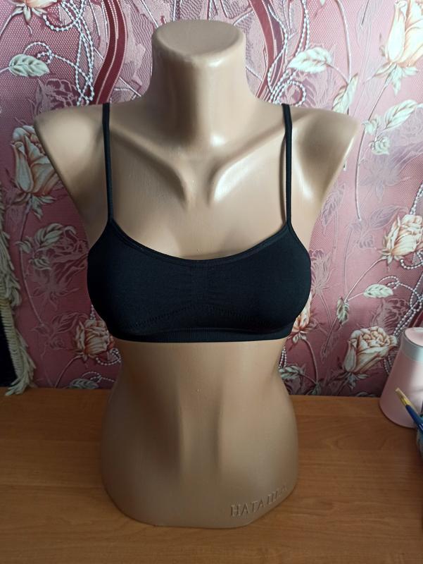 Топ для дівчинки Розмір - 8/9 років. Заміри: напівобхват грудей 26-42 см, ширина під грудьми 26-41 см, довжина (без урахування бретелей) 11,5 см. Довжина бретелей регулюється. В дуже хорошому стані