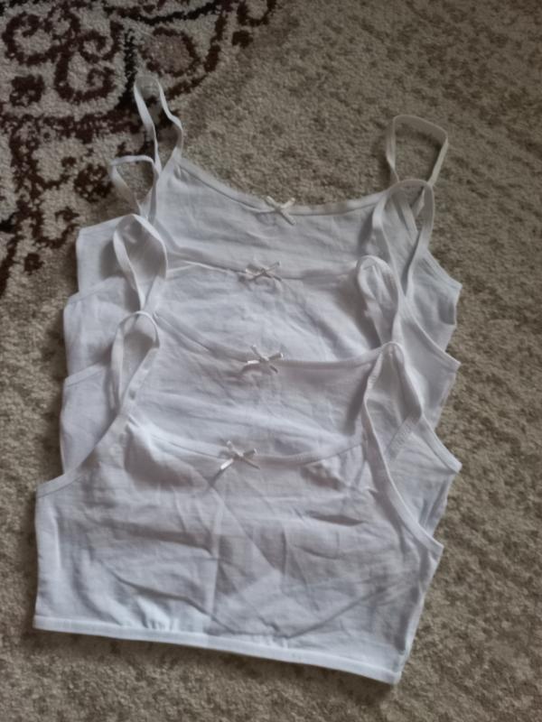 Топ из мягкого хлопкового трикотажа от бренда Primark. Топ декорирован бантиком, на узких бретелях и с резинкой снизу. Новые остались с набора