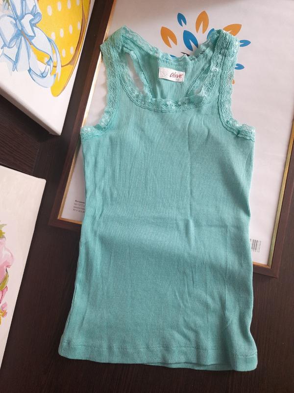 Очень приятная, мягкая на ощупь. Украшена кружевом. Ткань в рубчик, эластичная ( хорошо тянется) р.116: ширина - 27 см, длина - 43 см (по спинке) Состав: 100% хлопок
