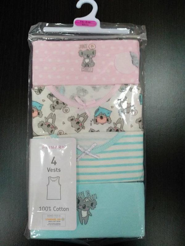 Майки для дівчинки Фірма - Primark ( Іспанія) Розмір - 1.5-2 р(92 см)- ,2-3 р(98 см), 4-5 р(110 см)- Склад -100% бавовна, ціна упаковки -240 грн Заміри 92 см - довж -32, пог- 27 98 см -довж -34, пог- 28 104 см -довж -39 пог- 29 110 см-довж -40, пог- 29 116 см-довж -41,пог- 30 92- полоска,панди 98- полоска 110- бірюза, полоска,панди