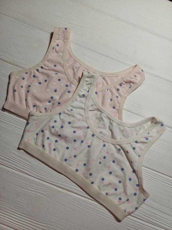 Маєчки в комплекті 2 шт: 1 біла в горох і 2 рожева в горох. Заміри на фото. Одягалися всього лише пару разів, стан ідеальний. Продаю комплектом.