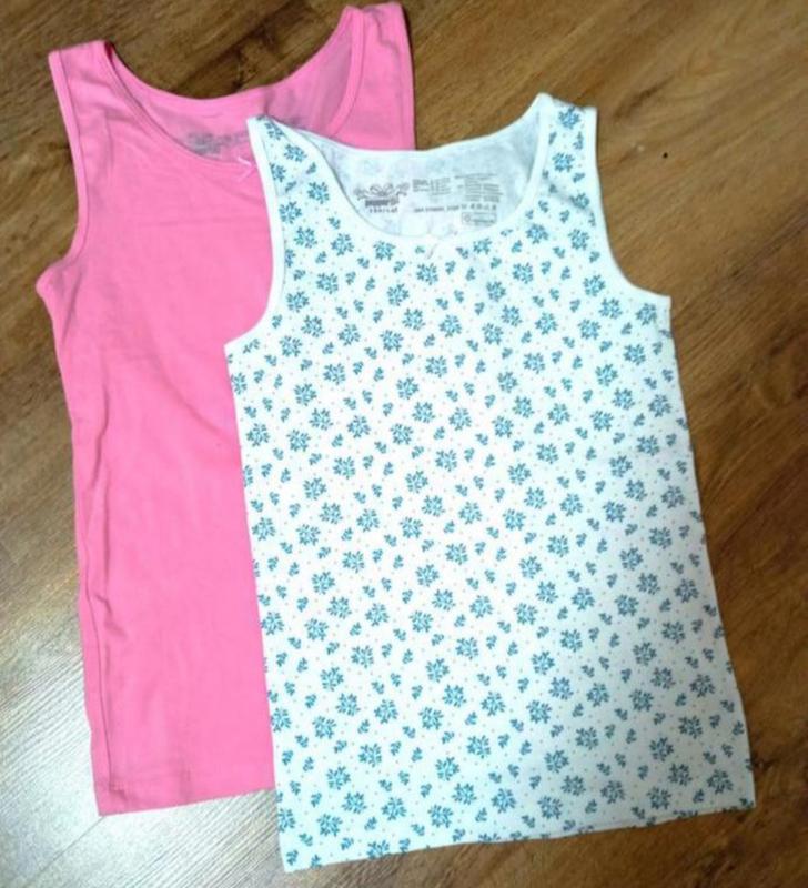 Майки з м'якого бавовняного трикотажу з широкими бретелями та декоративним бантиком спереду. Приємний комфорт при носінні завдяки високому вмісту бавовни. Оптимальна посадка завдяки еластану (LYCRA®). В наявності розмір 134/140 на 8-10 років. Довжина -50см. дпг-31см.\ Ціна за 2 шт До майок можна придбати трусики в розмірі 134/140 .4шт-265 грн.