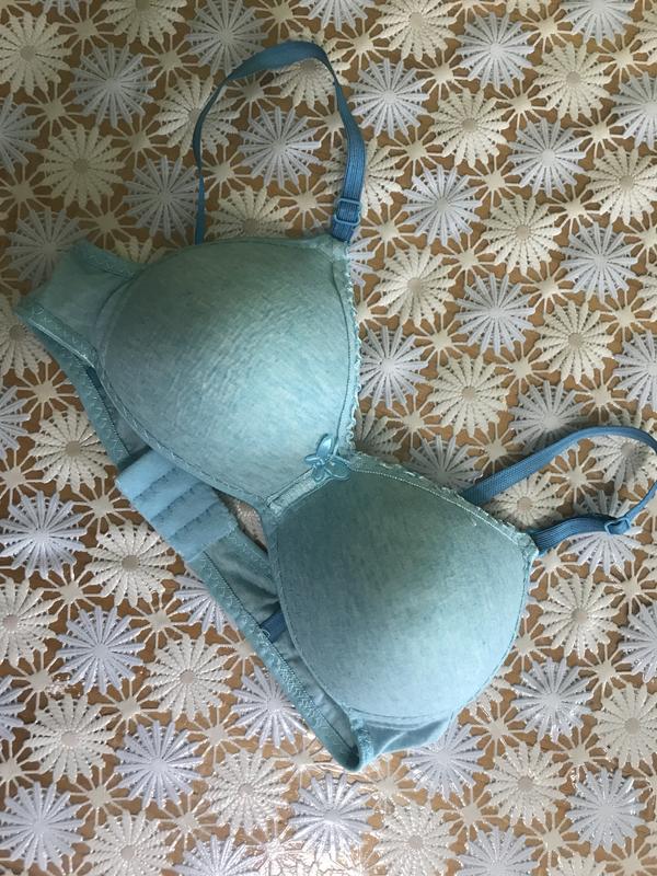 М'ятний бюстгальтер на дівчинку-підлітка. Абсолютно новий, доньці не підійшов за розміром. Бретелі регулюються. Довжина від застібки до застібки 54-55см, також є три гачка для регулювання обсягу