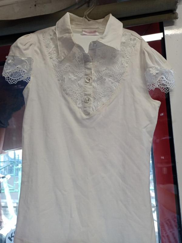Блуза напуговичках,бавовна.Стрейчеваямолочного кольору .На ріст 140.