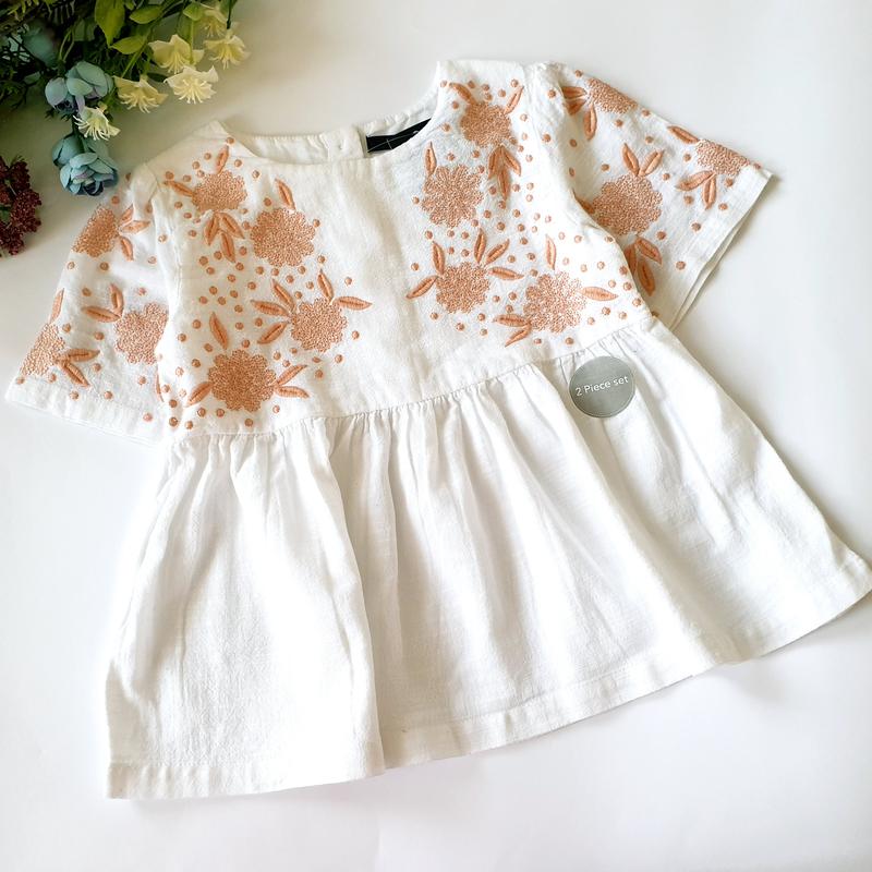 Легка натуральна туніка з вишивкою,на спинці гудзики, по бірці 4-5 років.(довжина 41, ПОГ 30)