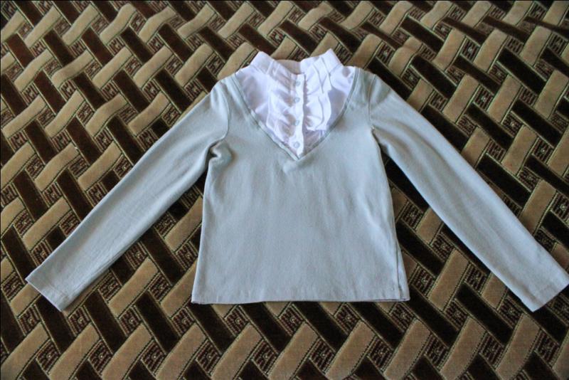 Трикотажна блуза б/у, але відмінному стані. Розмір уазан 122, але може підійти на 116, склад тканини вказаний на етикетці виробника (є фото). розмірені мною розміри: ПО під руками - 29 див. (виробник вказує - 30, можливо, я неправильно замерила або 30 це враховуючи те, що блузка тягнеться трохи); Довжина - 34 см Довжина рукава від плеча - 41 див Довжина рукава під рукою - 32 див. Український виробник - Юність.