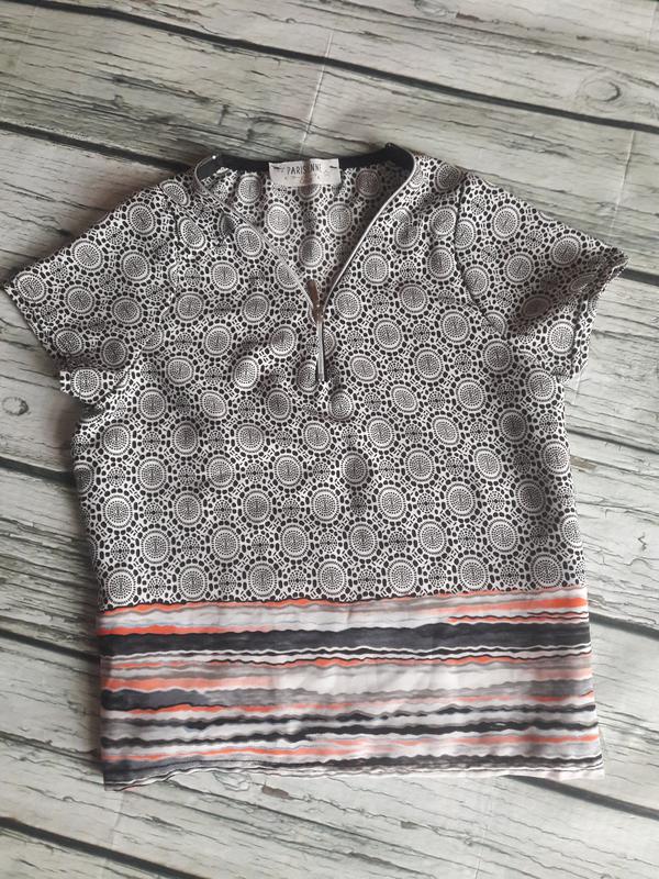 Блуза для дівчинки, попереду блискавка переходить в плечовий шов, рукав короткий. Довжина виробу 42 см, довжина рукава 12 см, напівобхват грудей 34 см, вільний крій.