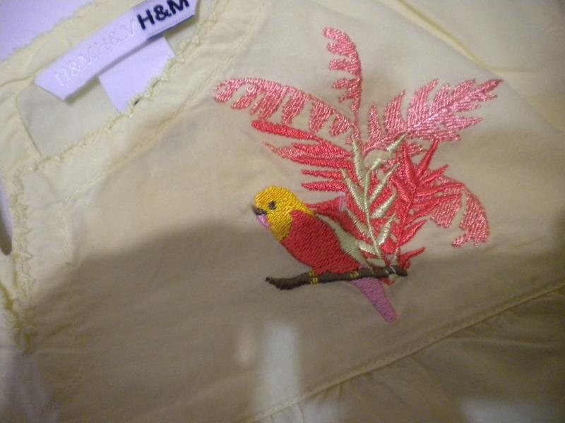 Дуже красива вільна туничка для дівчинки з вишивкою на тропічні мотиви Рукав 3\4 Один раз випрана - переросли Одягли одного разу в минулому році - було великим, тепер мало Ніяких вад Колір трохи яскравіше, ніж на фото Довжина по спинці - 42 см, рукав - 30 см ПОГ - 42 см
