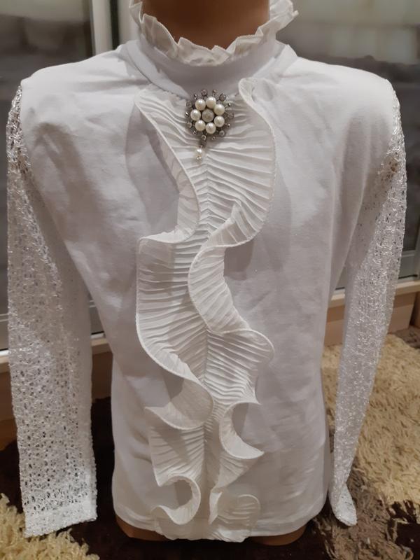 Красива блузочка жабо на дівчаток,з брошкою.на 7-8 років,і 11-12років,заміри по запиту