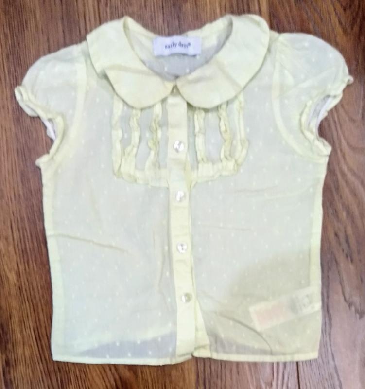 Жёлтая блузочка на девочку 18-24 месяца. Состояние отличное, материал хлопок, производство Испания. Длина 32 см, обхват груди 52 см, плечи 19 см, рукав 7 см.