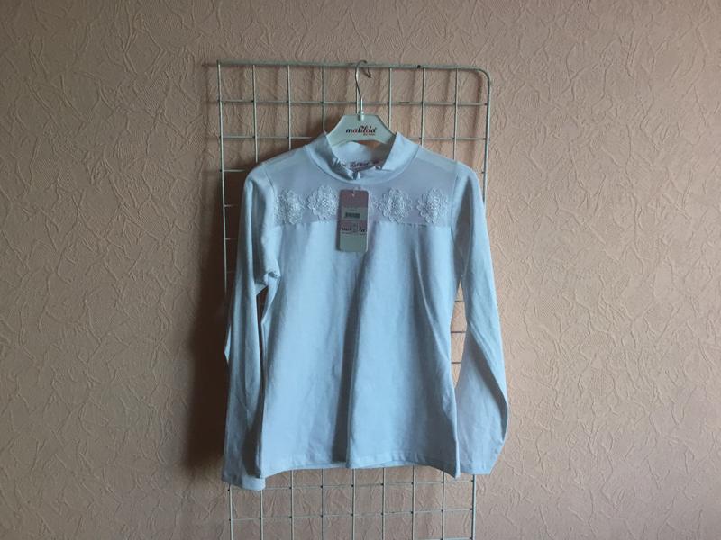 Трикотажна, нарядна блузка для дівчаток, відмінної якості, виробництва Туреччини, ідеально підходить для весни і школи, і під будь-низ. Тканина трикотаж, добре тягнеться і сідає по фігурі дитини. Комір йде стійка, перед виконаний сіточкою за якою йдуть квіти. Дорога турецька фірма виробник - Матильда. Ціна знижена,нова з біркою. Є розмір на ріст 128,140,152. Повномірні відповідають своїм розміром.Колір - білий.