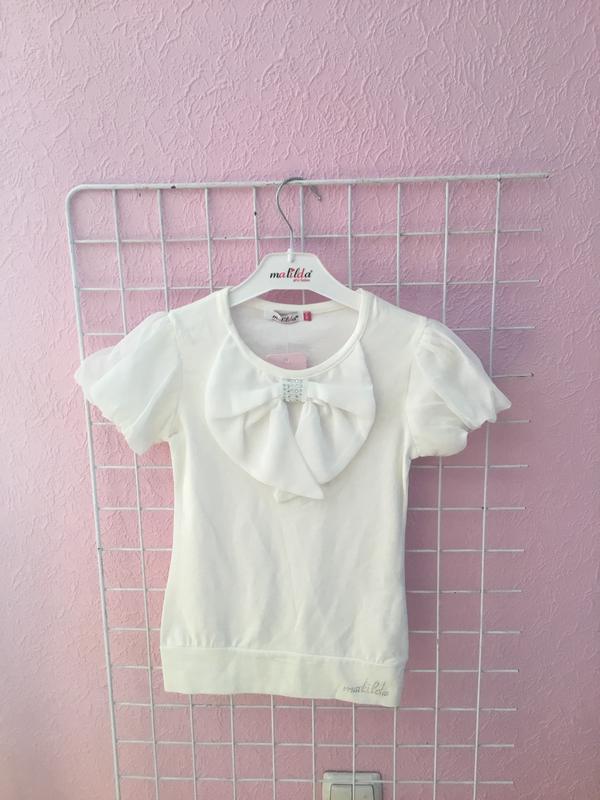 Ошатна, дуже красива, трикотажна блуза для дівчаток, відмінної якості, виробництва Туреччини, ідеально підходить для школи, різних заходів. Добре тягнеться і сідає по фігурі дитини. Дорога турецька фирмаМатильда. Супер блуза, нова з біркою, ціна знижена!!!!Розмір на ріст 128, колір Айворі
