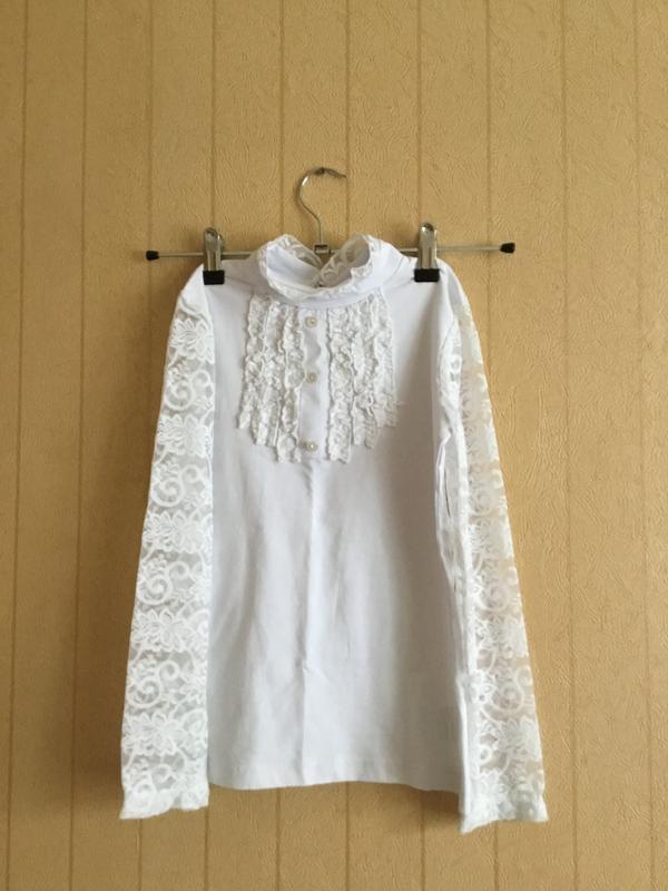 Ошатна, трикотажна блуза з гипюровыми рукавами, відмінної якості, виробництва Туреччини, ідеально підходить для школи і під будь-низ. Розмір на ріст 134-140, дуже красива і ніжна блуза.
