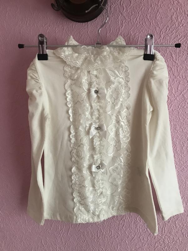 Ошатна, трикотажна блуза для дівчинки, відмінної якості, виробництва Туреччини, ідеально підходить для осені і школи. Розмір 116-122. Нова, ціна знижена.Заміри довжина по спинці 41, ширина під рукавами 31, довжина рукава 41-42,добре тягнеться,цсє-шампань.