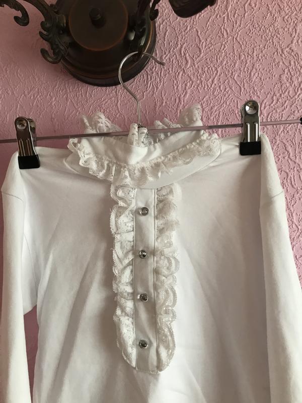 Трикотажна блуза для дівчинки, відмінної якості, виробництва Туреччини, ідеально підходить для осені і школи,добре тягнеться, розмір на ріст 128. Комірець - стійка, ззаду застібається на гудзики. Заміри довжина по спинці 49, ширина під рукавами 34, довжина рукава 48;