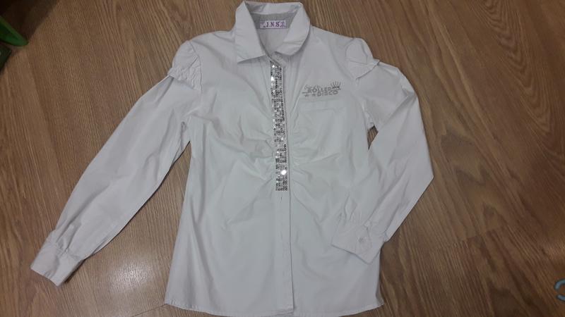 Блузка на девочку в идеальном состоянии. Длина от плеча 52 см, рукав от плеча 50 см, подмышки 40 см.