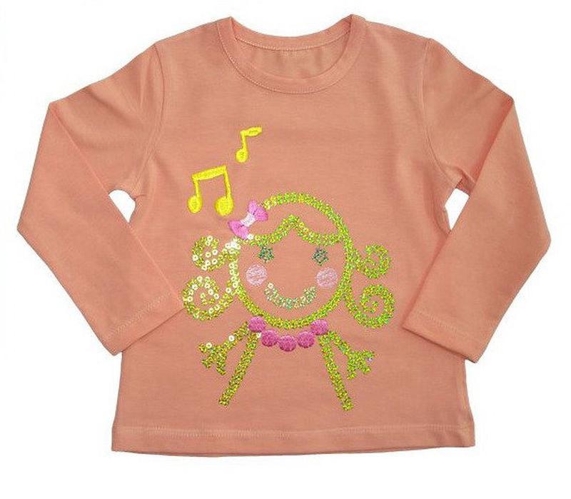 Модный весенний реглан для девочки, приталенный . Украшена красивым оформлением. Рекомендуется брать на размер больше от нужного. Цвет: Персик; Полотно: Стрейч-кулир; Состав: 95% хлопок, 5% эластан; В наличии рост 116