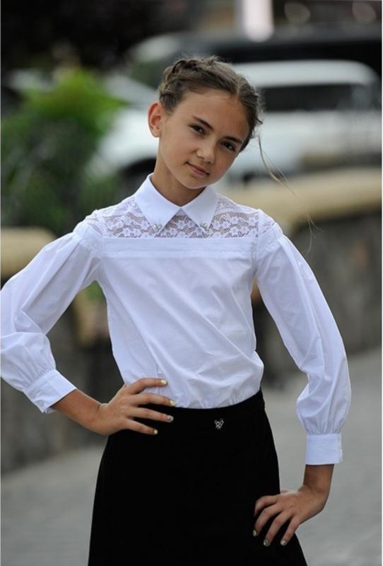 Шкільна блузка на дівчинку від бренду Colabear. Колір білий. Розміри 122-154р. Воротник відложний. Рукав довгий. Склад:65%бавовна,35%еластан.
