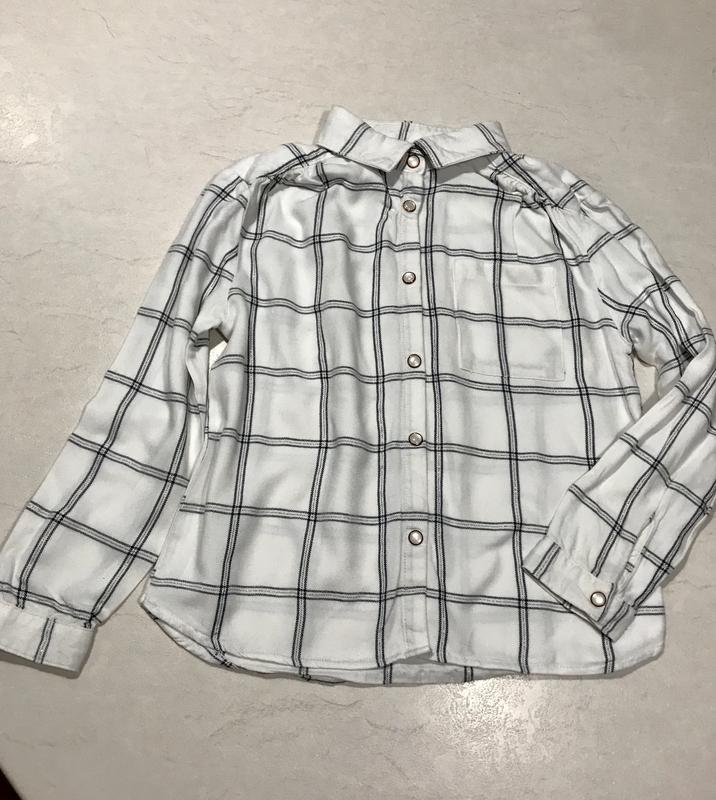 Наша улюблена сорочечка на кнопочки. Продаємо лише тому, що виросли. Розмір 114-119: - довжина - 40 см; - між підмишками - 36 см; - рукав - 37 см; - плечі (від шва до шва) - 30 см.