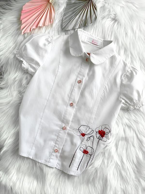 Блузочка, сорочка для дівчинки. Тканина 100% бавовна На ріст 110-116 см ПОГ - 34,5 см; ПІТ - 32 см; Довжина по спинці - 42,5 див.