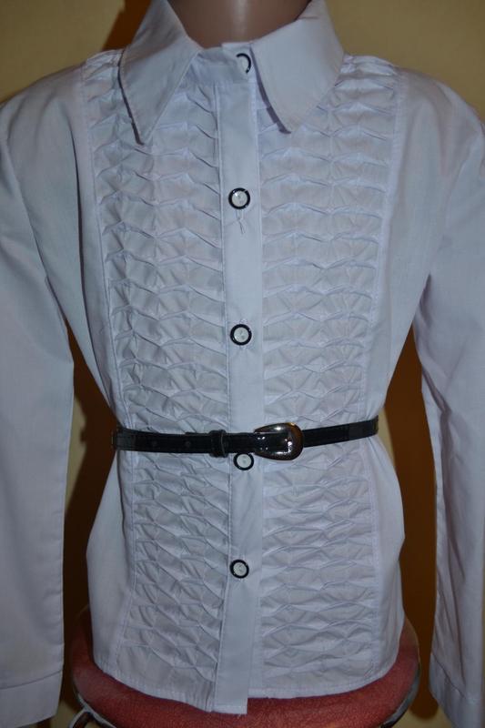 Шкільна блуза для дівчинки.Рукав трансформер (довгий робиться в короткий ) тканина батист (рубашчная біла) розміри 128,134,140,152,158-НЕ МАЛОМЕРЯТ.ПОЯС ЙДЕ В КОМПЛЕКТІ.. Ціна 210грн