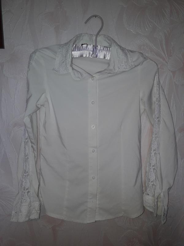 Шкільна сорочка з гипюровыми вставками на рукавах.