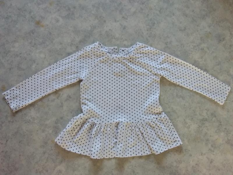 Кофточка под лосины белая в черный горошек ПОГ 28см по талии 30 рукав реглан от плеча 38см длина 40см