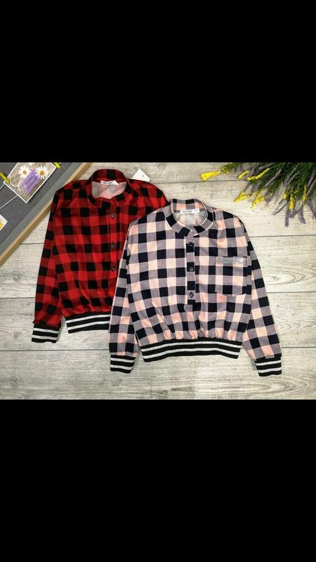 Тканина-французький трикотаж. Знизу і манжет на гумці, застібається на гудзики. Якість супер, Заміри: Довжина /ширина /рукав від плеча 128р-43/38/44 134р-44/39/46 Розоваая : 134-1 Червона: 128-1 😻