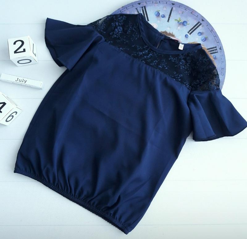 245 грн Блузка ⭐Ткань: софт (60%вискоза 23%хлопок 17%полиэстер) ⭐Цвет: темно-синий ⭐Дополнительно: сзади на пуговке/низ резинка ⭐Производитель Украина р.122-длина от плеча 44 см/ПОГ 34 см-1шт